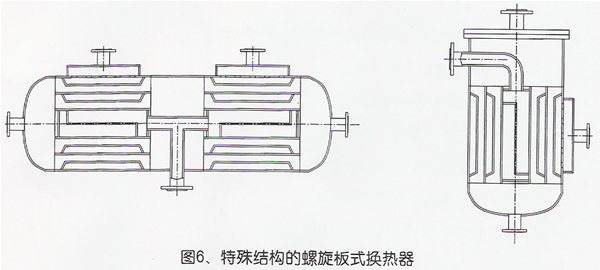 有些化工上用的螺旋板式換熱器,根據加工工藝的要求,需要諸如的特殊結構,兩端帶有封頭、端蓋或兩個換熱器串到一起,結構不一,需要設計部門專門設計。