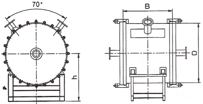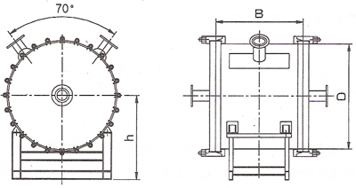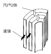 對于換熱的兩種介質,一種是液體,另一種是汽(氣)體,可按錯流方式流動,所謂錯流,是指液體按螺旋方向流動,汽(氣)體按換熱器的軸向直接通過,如圖三,這主要是考慮到汽(氣)體的特點,適于較大的流量,減少阻力,適用于有機蒸汽冷凝。根據具體工況,蒸汽也可按螺旋方向流動,但氣體由于熱容量較小,一般那要按軸向直接通過。