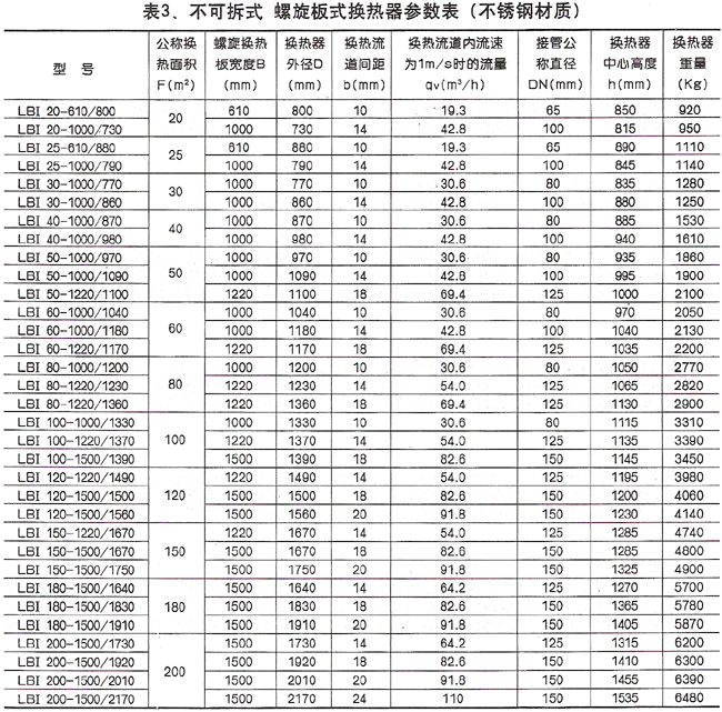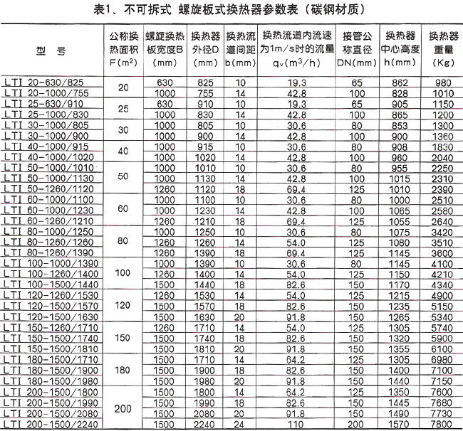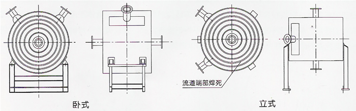 卷制后的螺旋板式換熱器,其兩端焊死,它不可拆卸,形成固定結構,流程內部不可觸及。它適用于不易堵塞的流體換熱。不可拆式又有臥式和立式的結構。