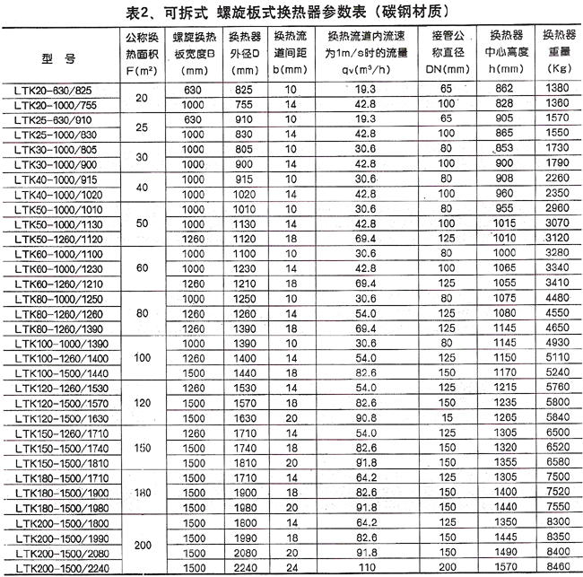 螺旋板式換熱器的最高工作溫度可達構成換熱器材料所能耐用的最高指標,最高可達300攝氏度。設計壓力可分為0.6、1.0、1.6MPa,相應地,針對碳鋼板而言螺旋換熱板的厚度應為4、5、6mm。